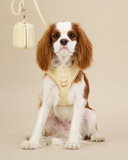 A harness tailor-made for those pups who effortlessly steal the spotlight wherever they go, all while keeping things refreshingly simple. The bouclé material, famous for its beautifully curled and looped yarns, provides a visually pleasing and delightful  tactile experience.